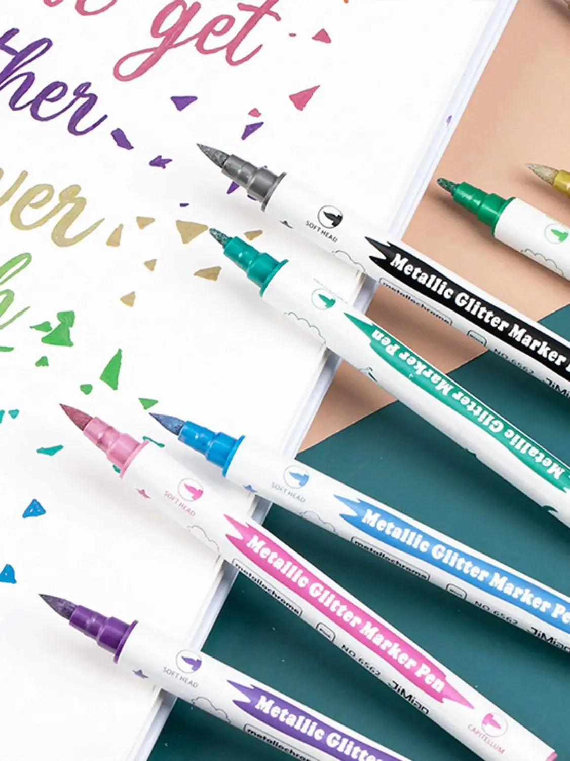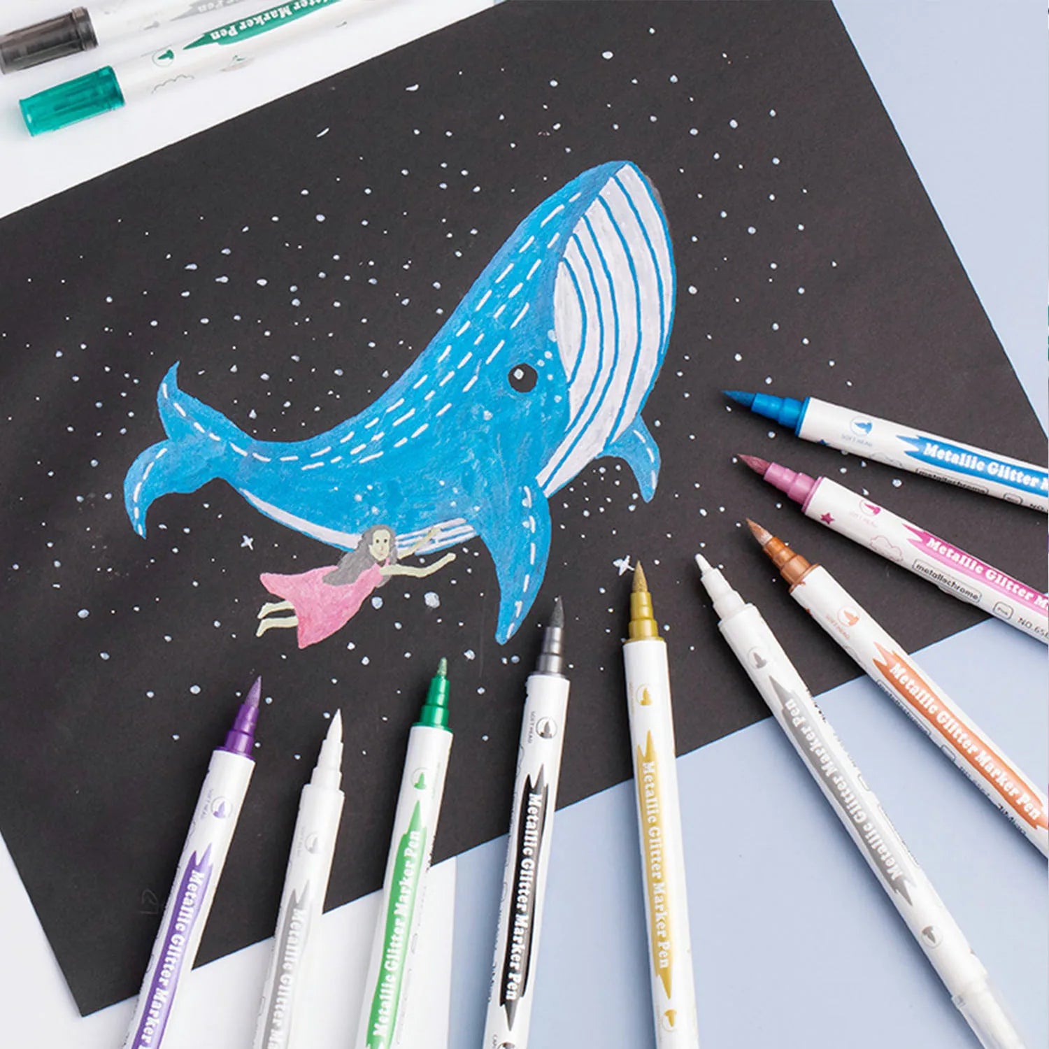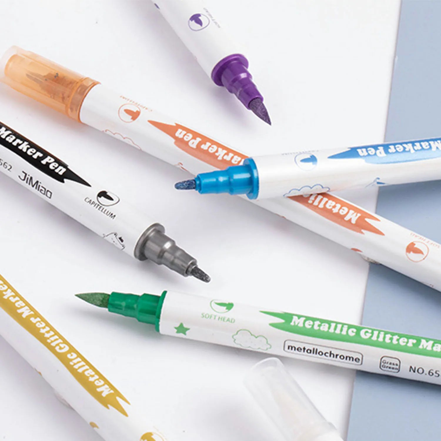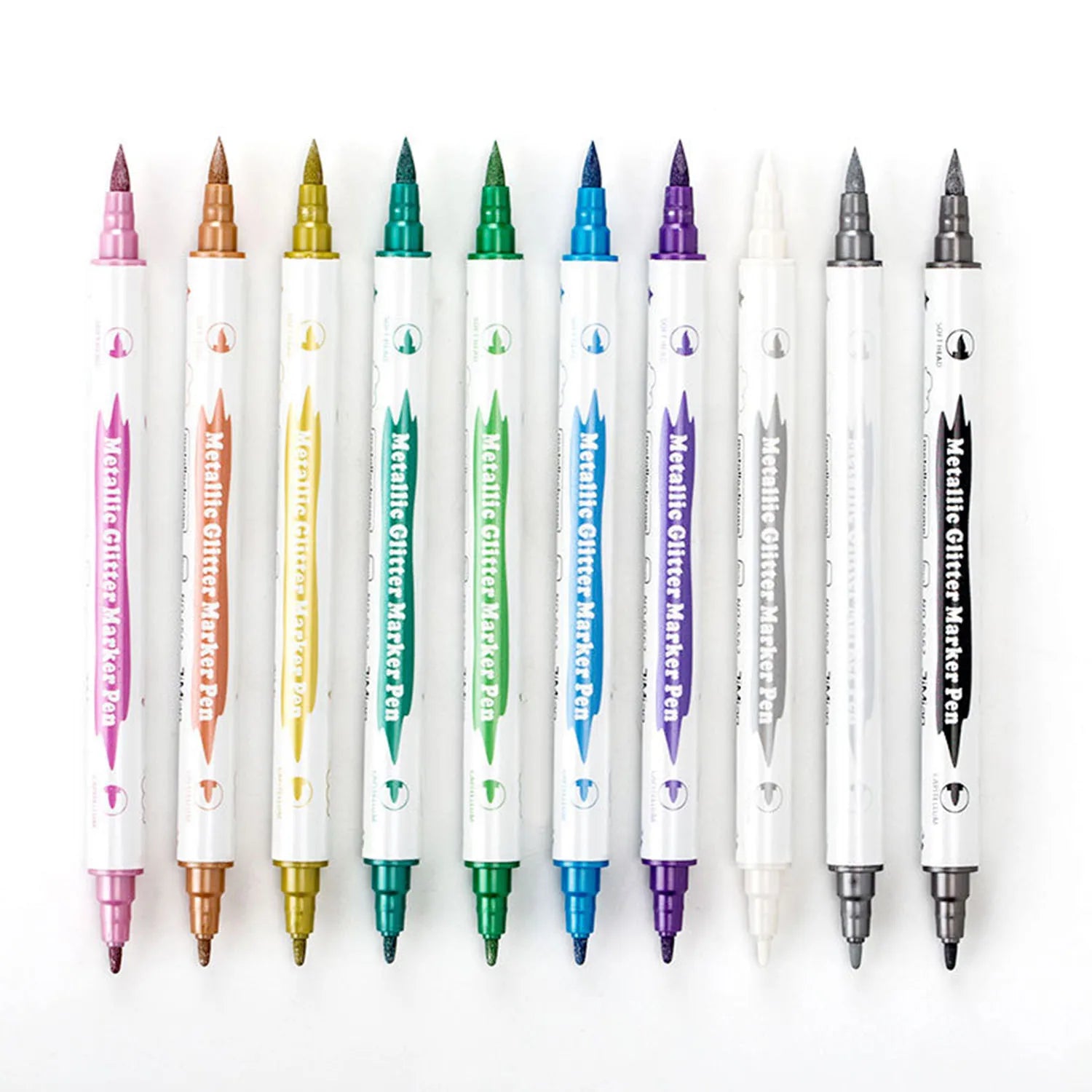 10 قطع من أقلام التحديد المعدنية ذات الرأس المزدوج مع فرشاة ورؤوس دقيقة وأقلام تحديد للبطاقات اليدوية وأدوات الرسم والكتب والعودة إلى المدرسة