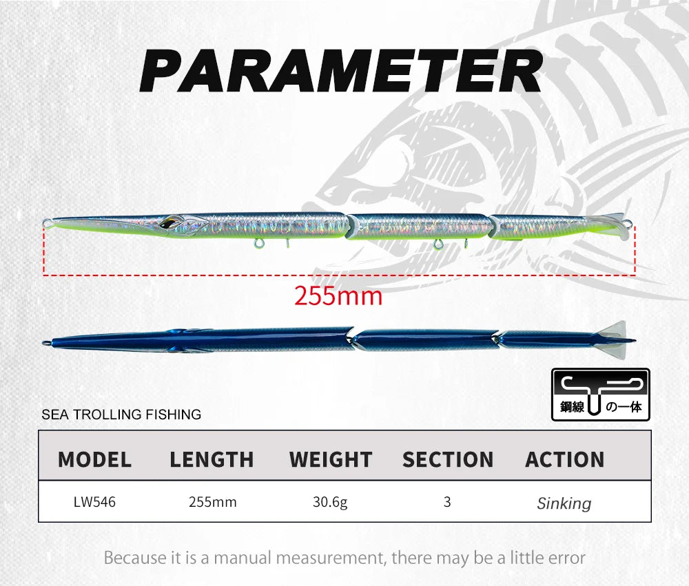طُعم صيد السمك هانتهاوس المفصل بالقلم الرصاص، مكون من 3 أقسام، 255 مم/30.6 جم، طُعم سباحة غاطس بالإبرة لسمك القاروص الأزرق