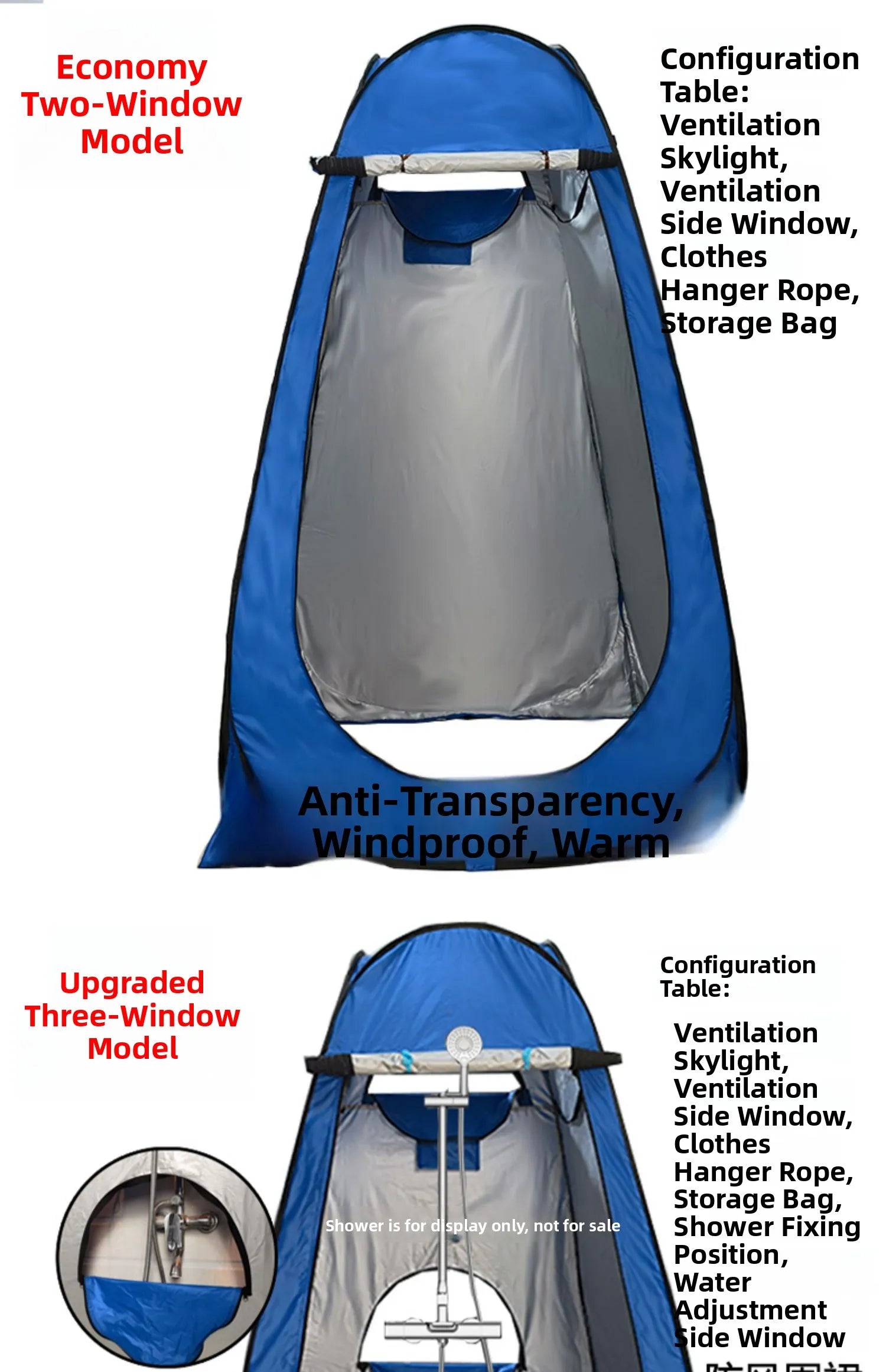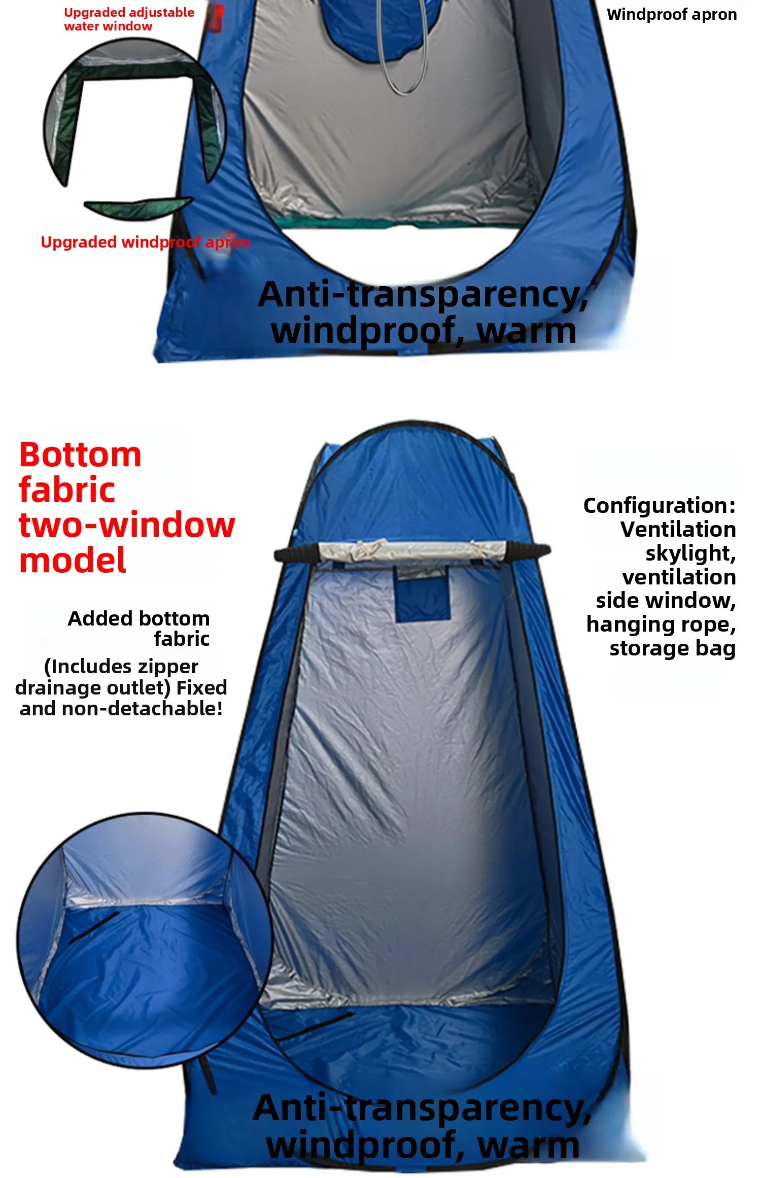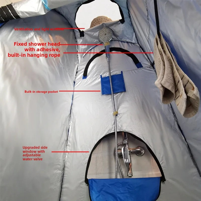 خيمة استحمام خارجية محمولة، خيمة طاقة سميكة، مرحاض متنقل، غرفة تغيير الملابس، عزل حراري، كاميرا، معدات سفر