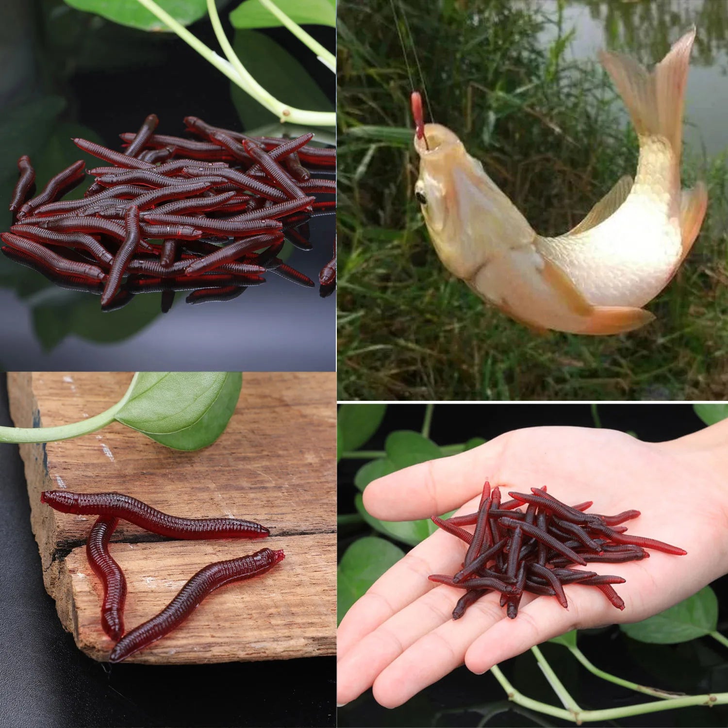 Sougayilang 50-200 قطعة طُعم صيد ناعم محاكاة دودة 4 سم 0.3 جرام طُعم اصطناعي واقعي برائحة السمك طُعم صيد سمك القاروص