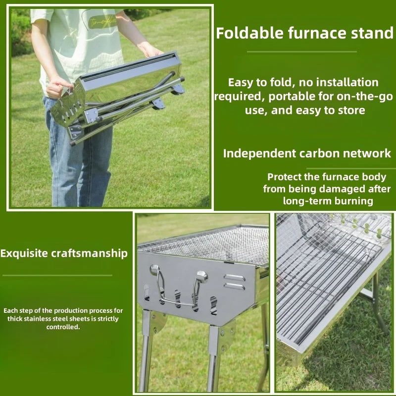 شواية من الفولاذ المقاوم للصدأ، شواية منزلية قابلة للطي، شواية محمولة، للاستخدام الخارجي! أحضر معك شواية إلى عالم التخييم.