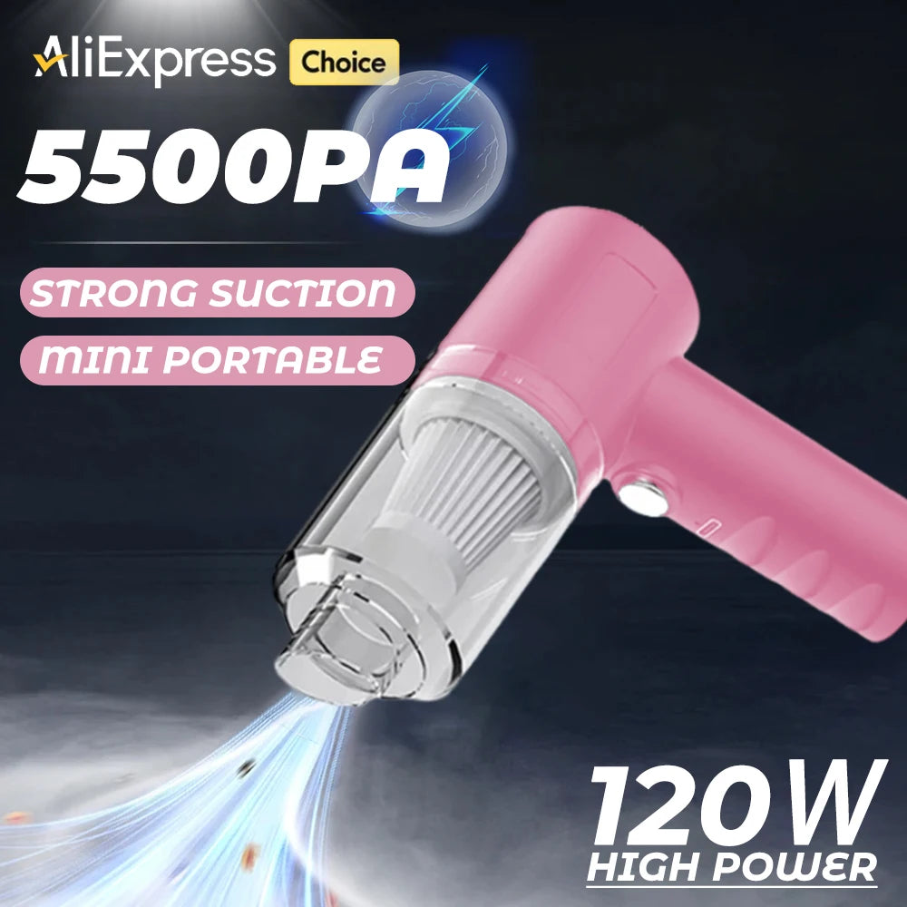 مكنسة كهربائية لاسلكية للسيارة بقوة 5500 باسكال وقوة 120 وات، مكنسة كهربائية محمولة عالية الطاقة للاستخدام المنزلي والمكتب والسيارة