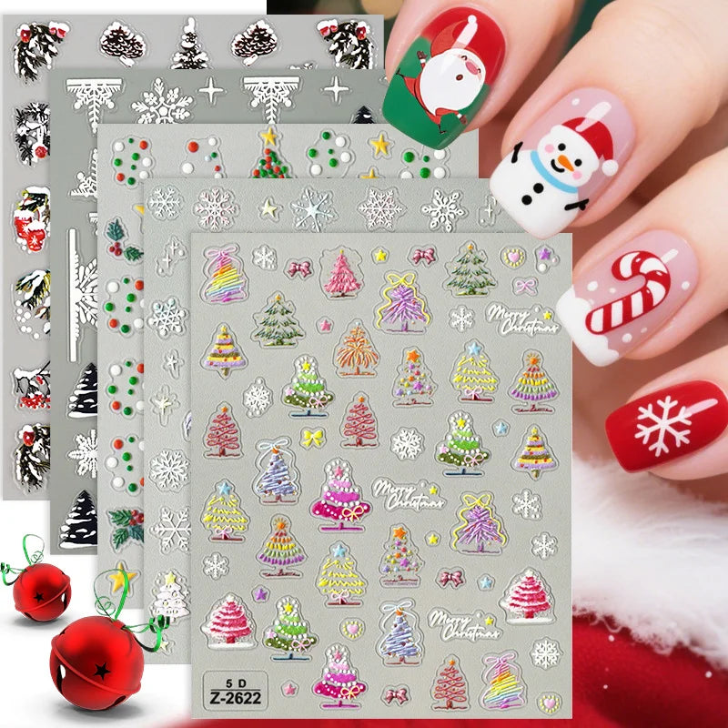 1 Sheet Embossed Snowflakes 5D Nail Stickers Decal Winter Christmas Nail Art Decoration Manicure Butterfly Nail Stickers Design