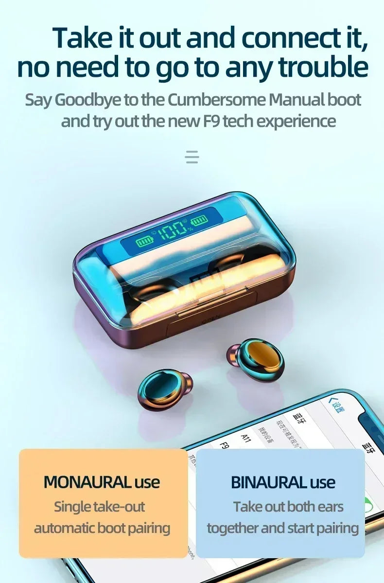 TWS Bluetooth Headphones 9D Stereo High Bass Sport Earphones Handfree Touch Control Tws Wireless Earbuds Waterproof Headset