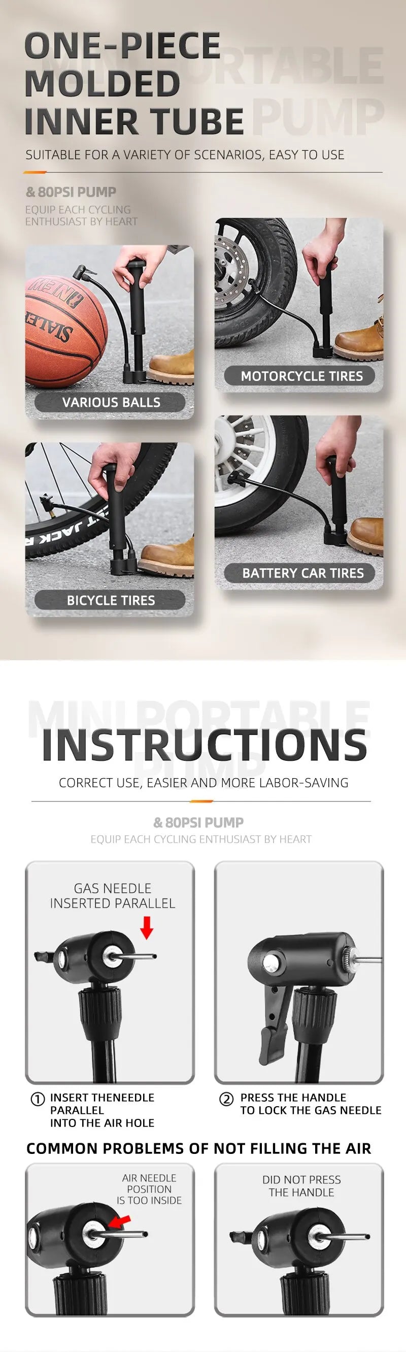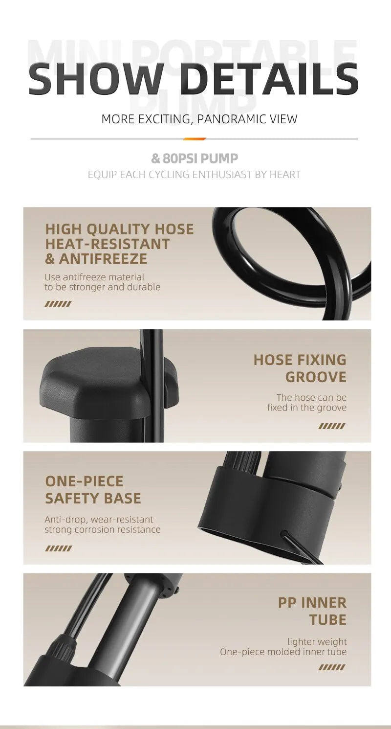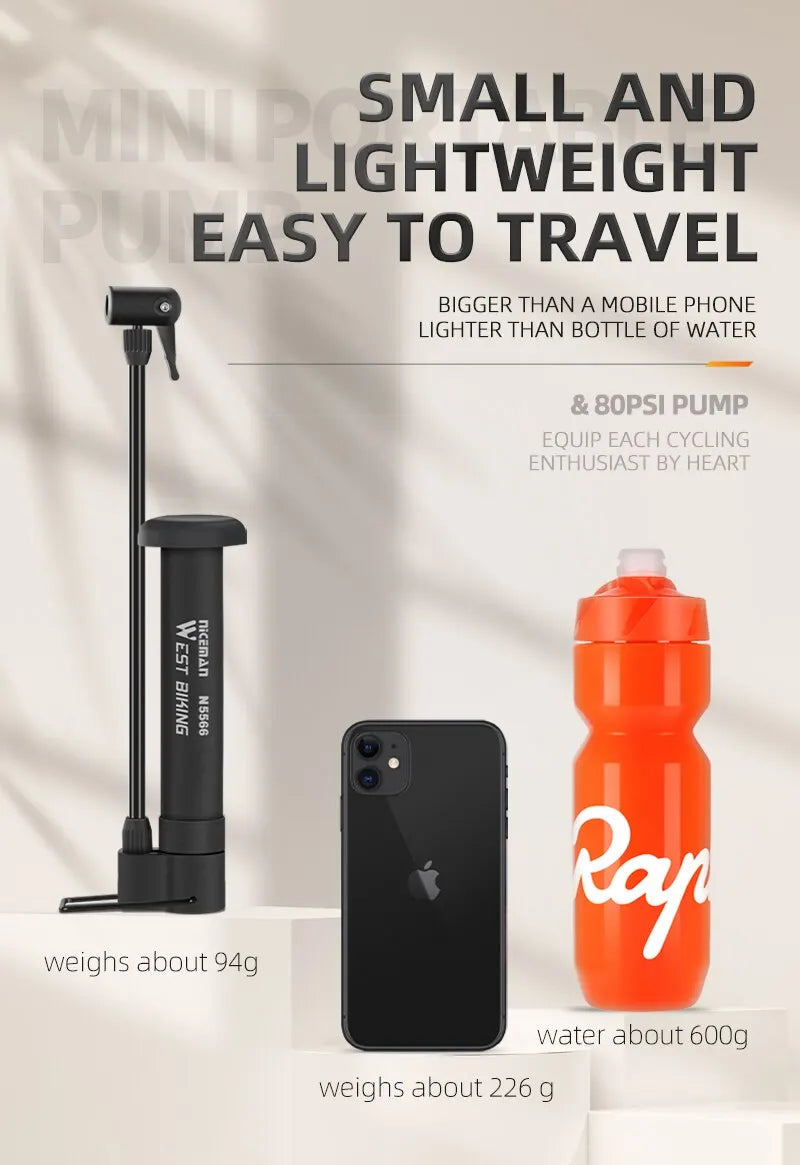WEST BIKING MTB Bicycle Pump 80 PSI Bike Manual Air Pump Balloon Tire Inflator Schrader Valve Floor Pump Cycling Accesories