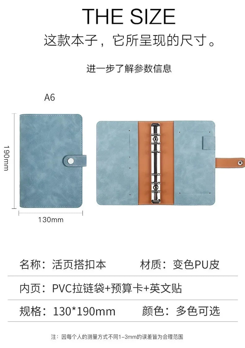 A6 Budget Binder Planner Notebook Cover PU Loose-leaf Handbook 6 Holes Binder Diary Agenda Paper Cover School Stationery