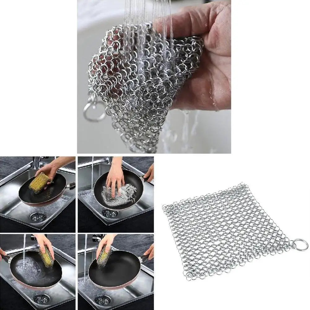 Kitchen Cleaning Ring Stainless Steel Cleaner Chainmail Scrubber Brush Pan Net Home Cookware Reusable Washing Net Cleaning Tool