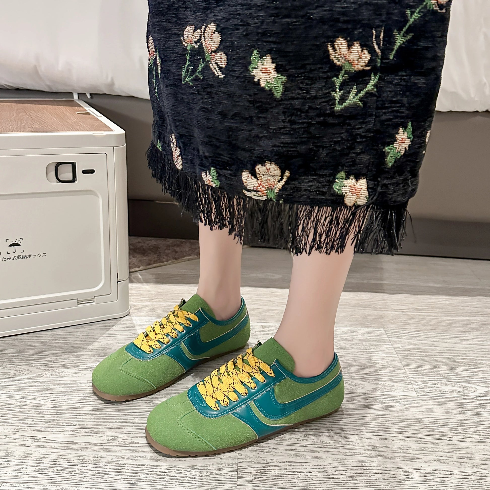 Shoes for Women 2025 Spring Autumn New Genuine Leather Ladies Moral Training Vulcanized shoes Retro Casual Flat Women's Sneakers