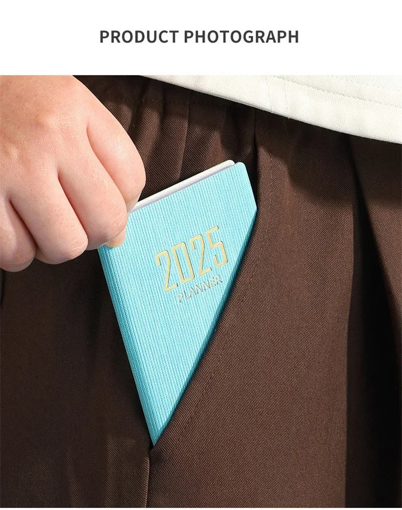 365-Day 2025 Portable A7 Pocket Planner Pu Cover Daily Weekly Schedule Notebook Calendar Journal School Office Supplies Agenda