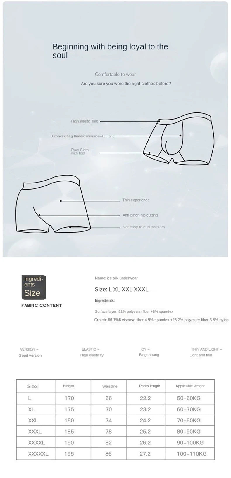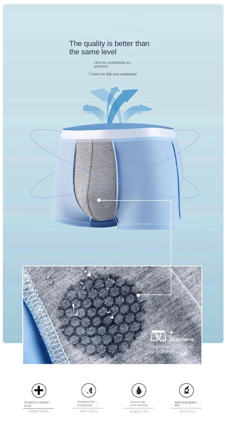 4pcs Boxer Shorts Men's Ice Silk Underwear Cool Underpants Breathable Sexy Thin Panties U Convex Lingerie Wholesale Lots L-6XL