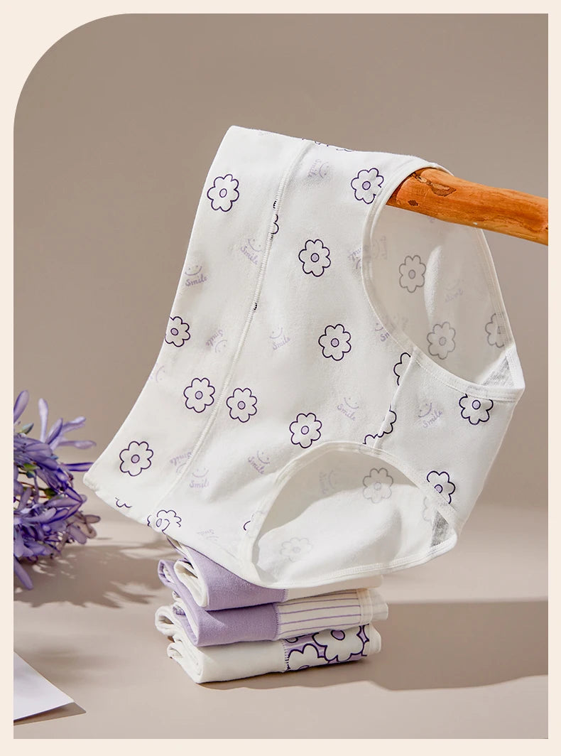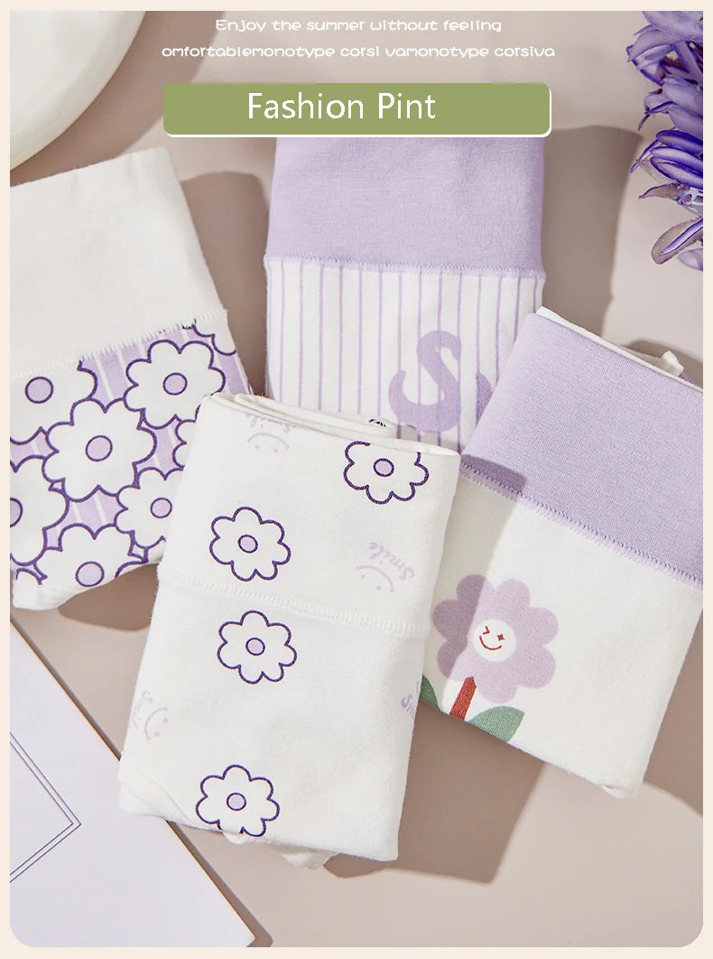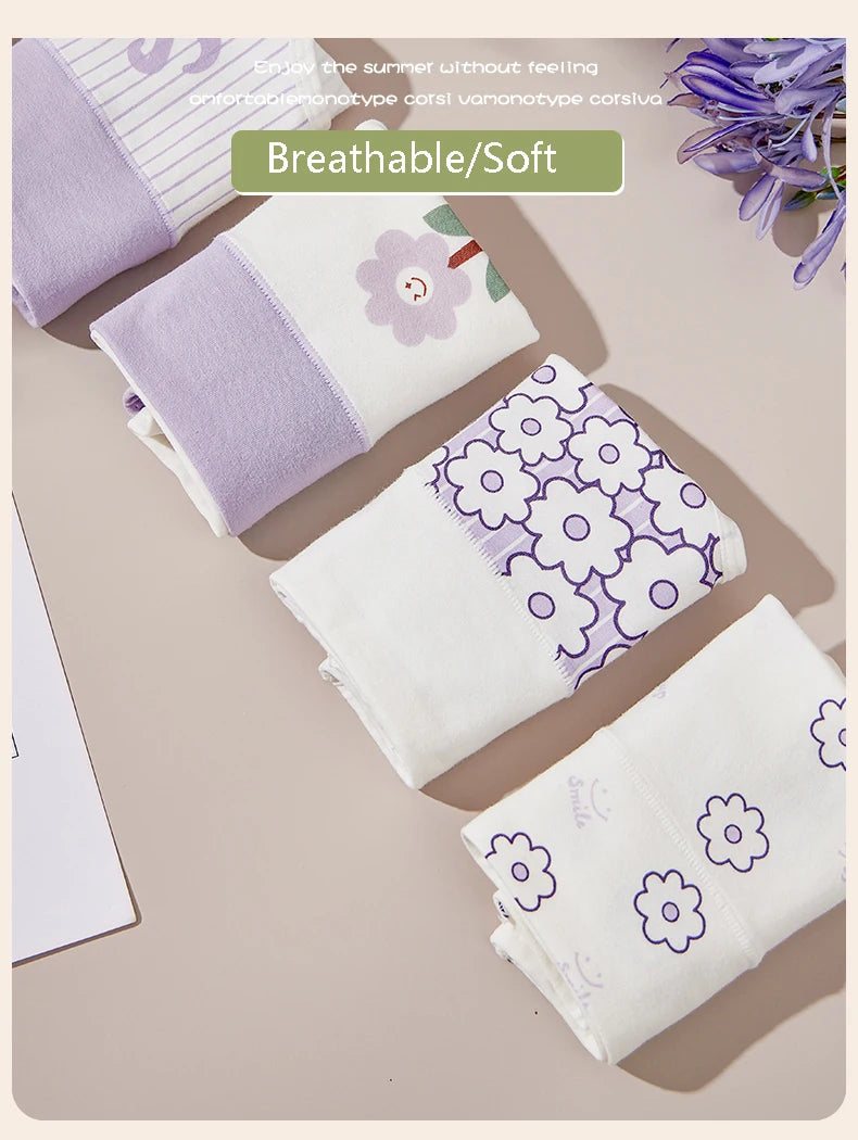 4Pcs/Set Cotton Panties Women High Waist Slimming Underwear Cute Print Young Girls Briefs Plus Size M-4XL Soft Female Lingerie