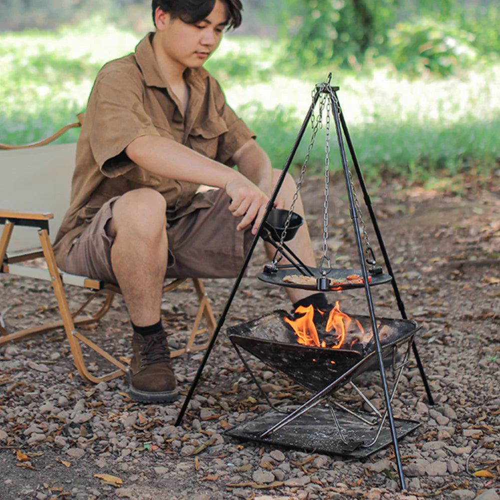 BBQ Triangular Bracket Multifunctional Versatile Grill Pot Rack Portable Adjustable with Chain Outdoor Camping Supplies