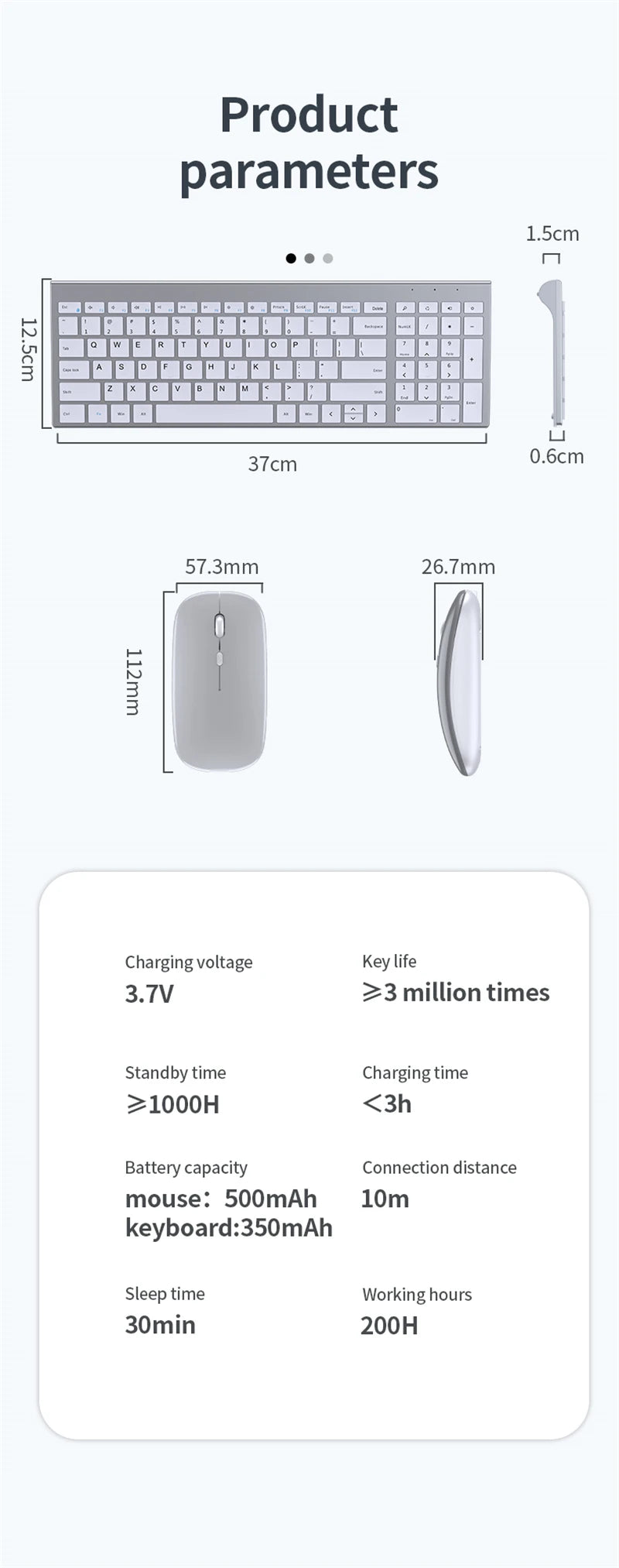 Bluetooth 5.0 & 2.4G Wireless Keyboard and Mouse Combo Mini Multimedia Keyboard Mouse Set for Laptop PC TV iPad Macbook Android