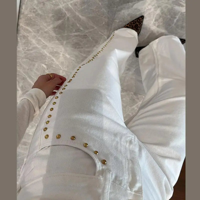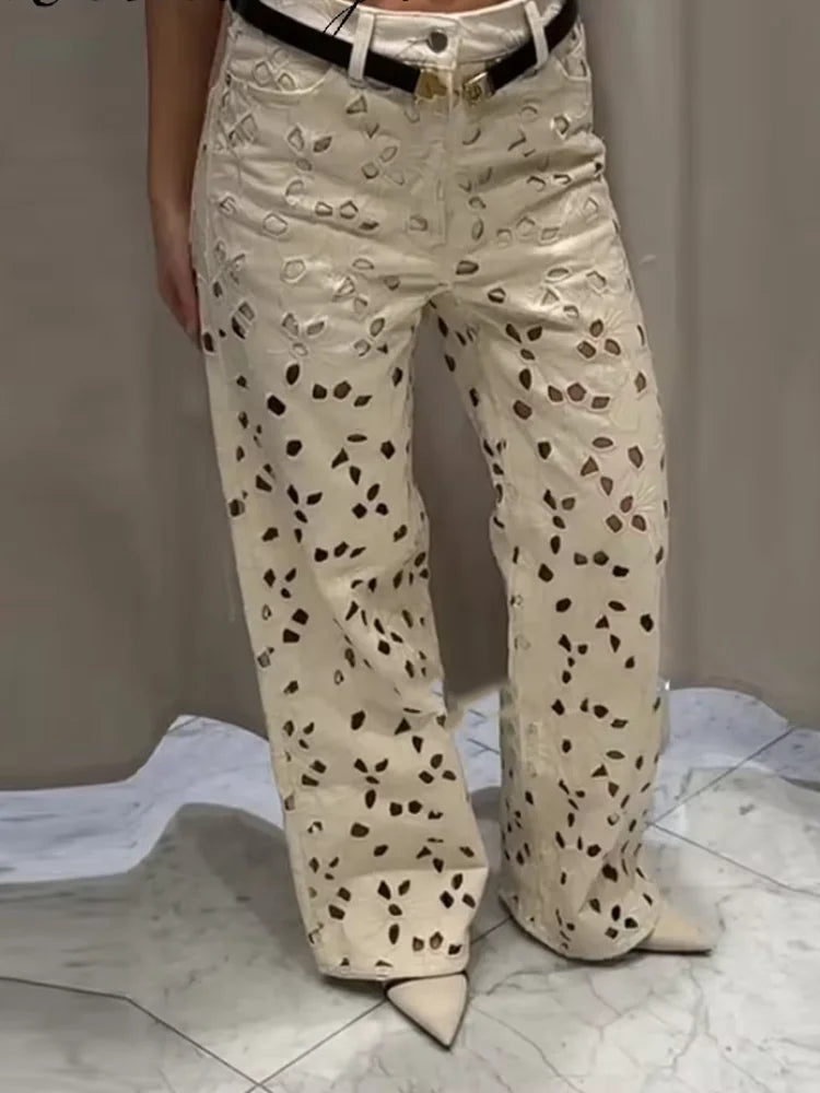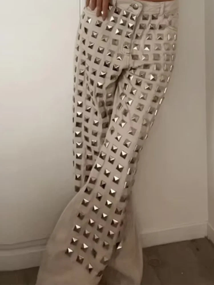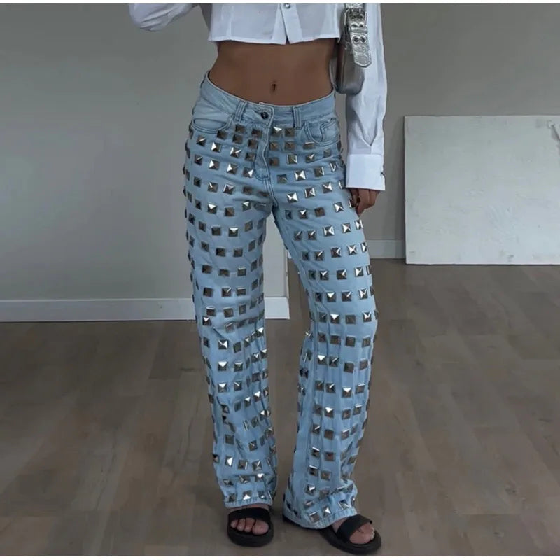 Casual Bead Jean Women Loose High Waisted Pockets Zipper All-match Straight Leg Trouser Female 2025 Y2k High Street Lady Outwear