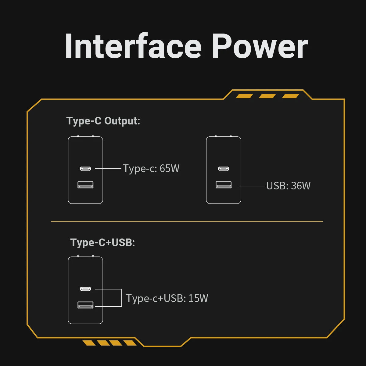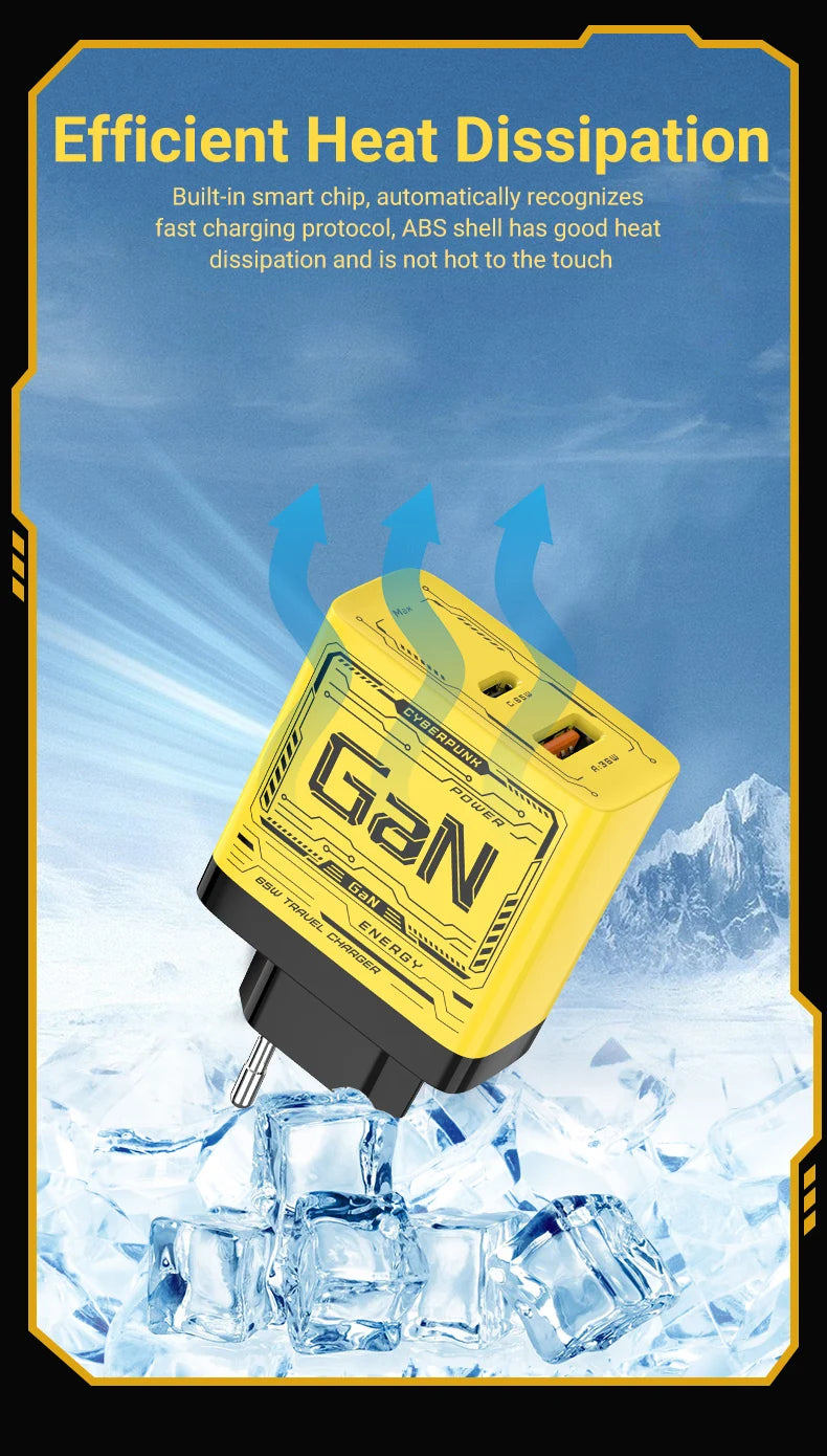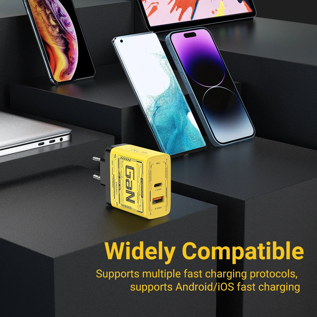 EU/US Plug PD65W GaN Fast Charger with Type-C and USB-A Interface Universal Dual Port Wall Charger Plug for Phones/Pads/Laptops
