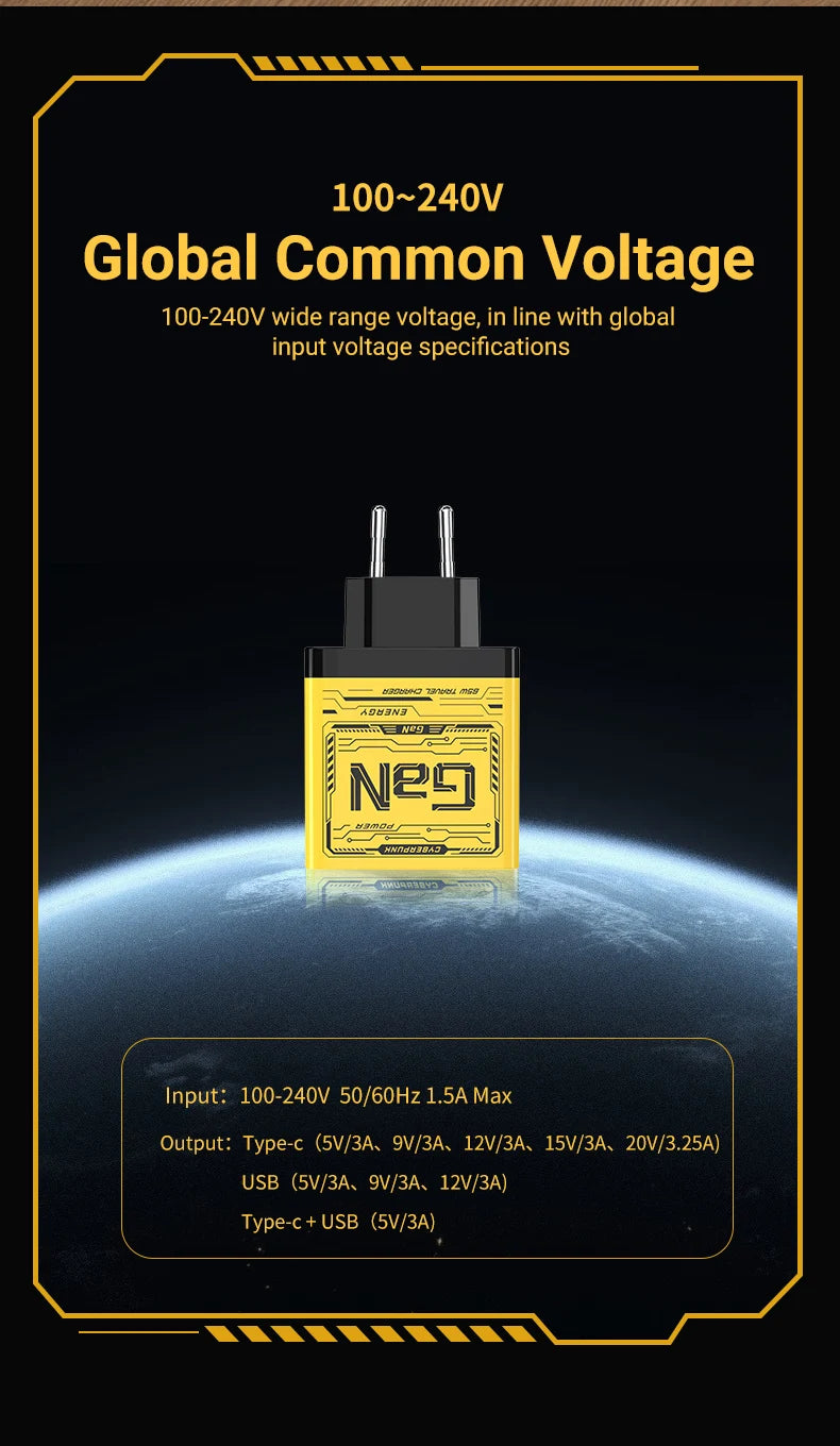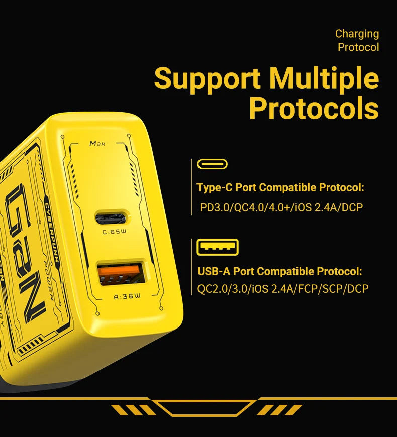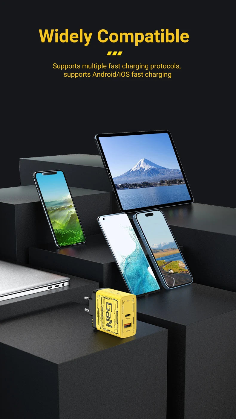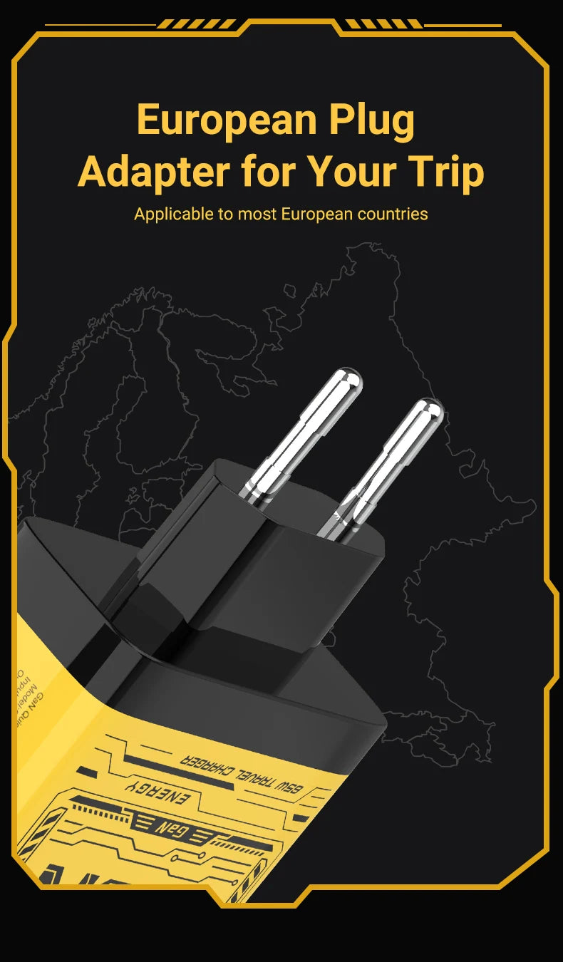 EU/US Plug PD65W GaN Fast Charger with Type-C and USB-A Interface Universal Dual Port Wall Charger Plug for Phones/Pads/Laptops