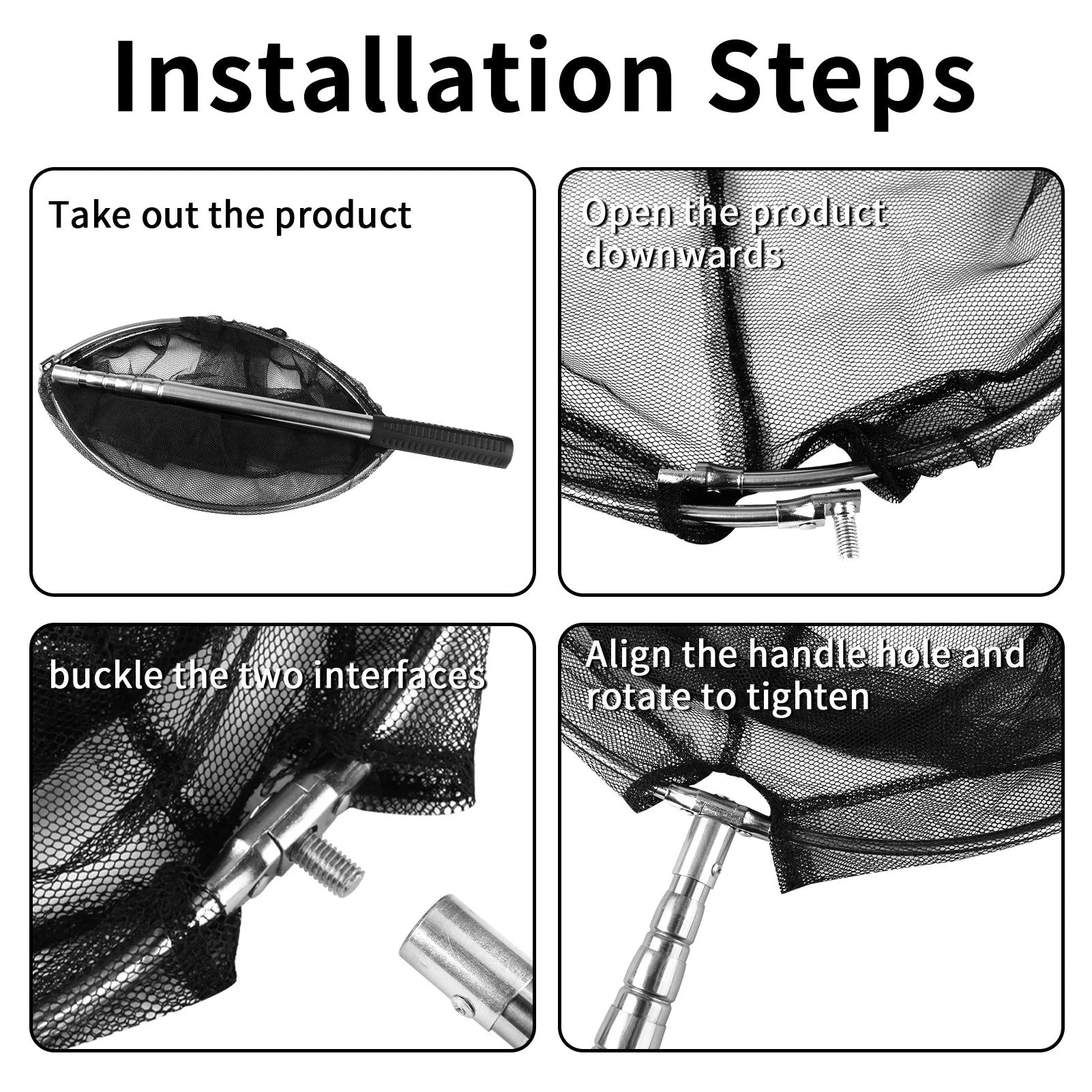 Fishing Landing Net Aluminum Alloy Durable Telescoping Extend to 190cm/130cm/55cm Folding Mesh Safe Fish Catching Releasing