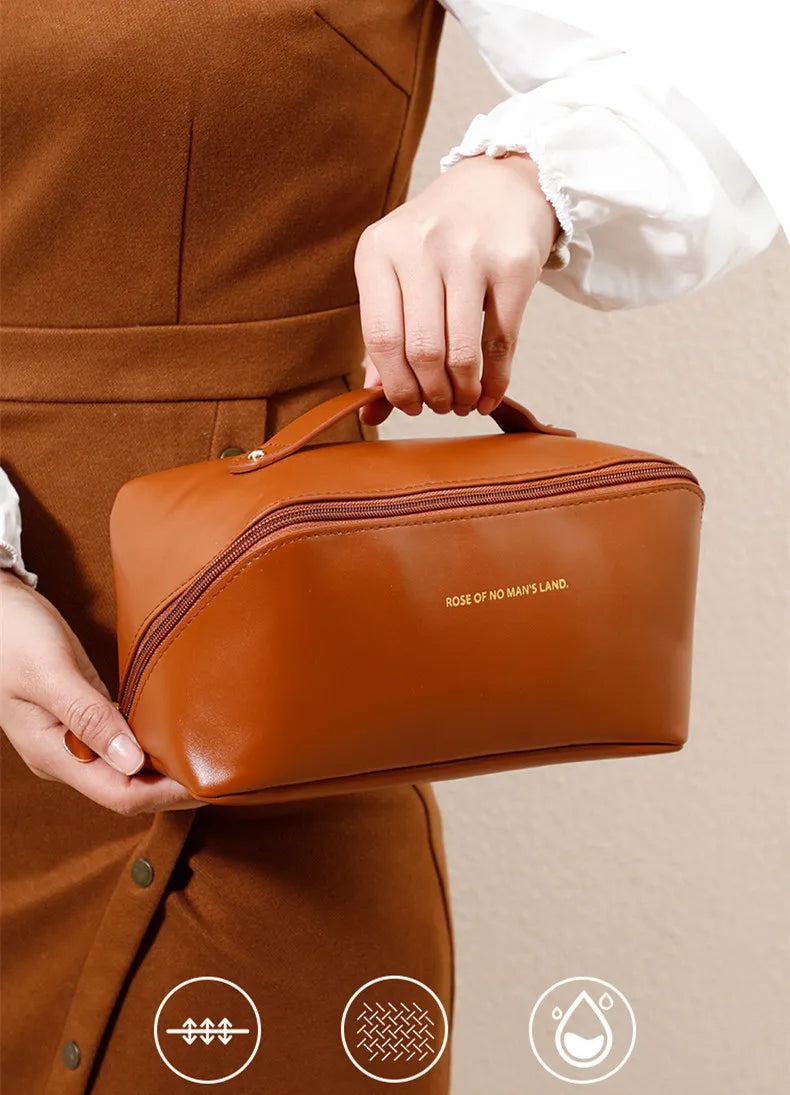 Large-Capacity Travel Cosmetic Bag Portable PU Makeup Pouch Women Waterproof Bathroom Wash Handbag Multi-functional Toiletry Kit