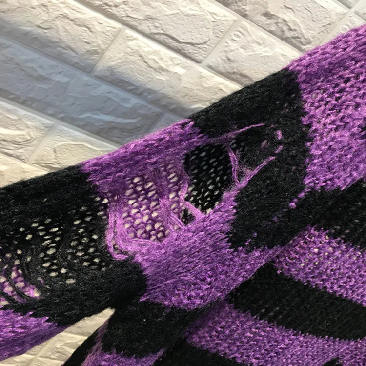 New Punk Gothic Long Unisex Sweater Summer Women Striped Cool Hollow Out Hole Broken Jumper Loose Rock Thin Dark Streetwear Top