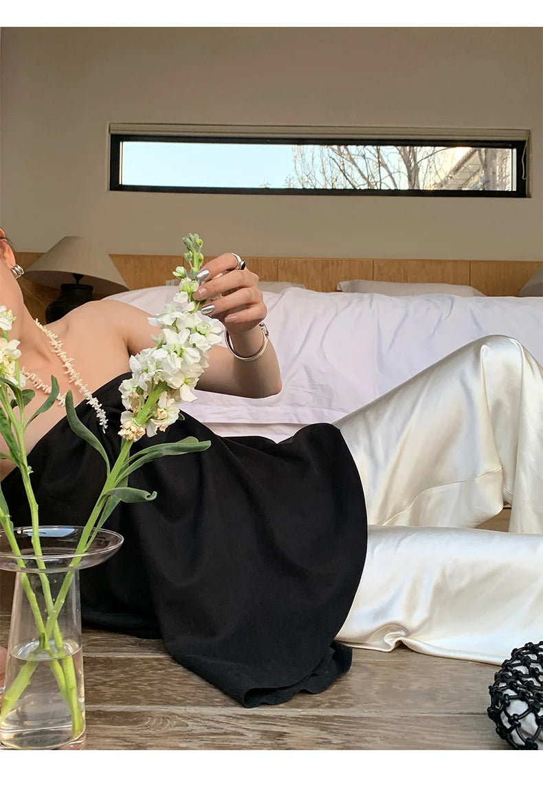 Satin Wide Leg Pants Long Floor Casual Pants Women's Summer