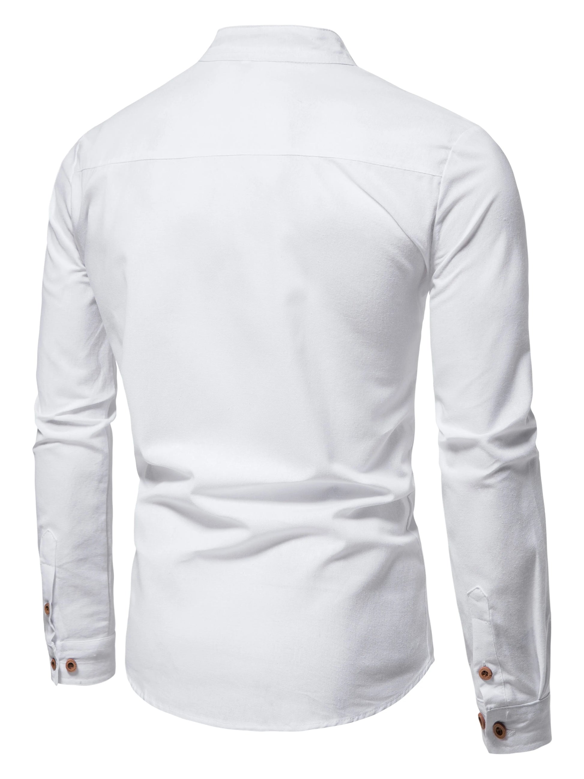 Spring and autumn men's pure cotton solid color shirts, elegant long-sleeved stand-up collar shirts, slim-fit men's shirts