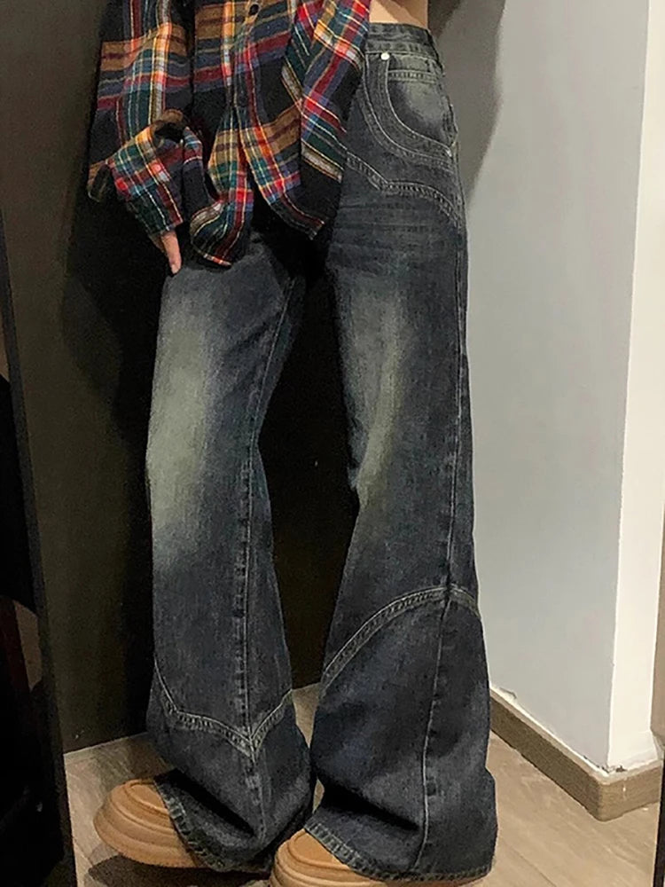 Y2K Spicy Girl Dark Series Wide Leg Jeans Women's New High Street Splicing Loose High Waist Slimming Flare Pants
