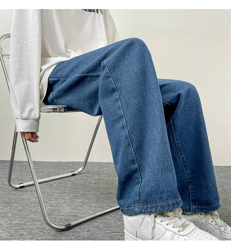 2025 New Men's Jeans | Korean Euro US Style | Straight & Wide Leg Denim Pants | Trendy Solid Color & Black Design
