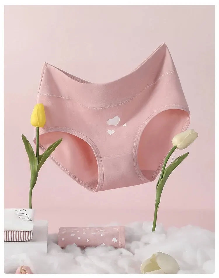 4Pcs Women's Panties High Waist Underwear Fashion Print Girls Briefs Breathable Cotton Panty Plus Size M-5XL Female Lingerie