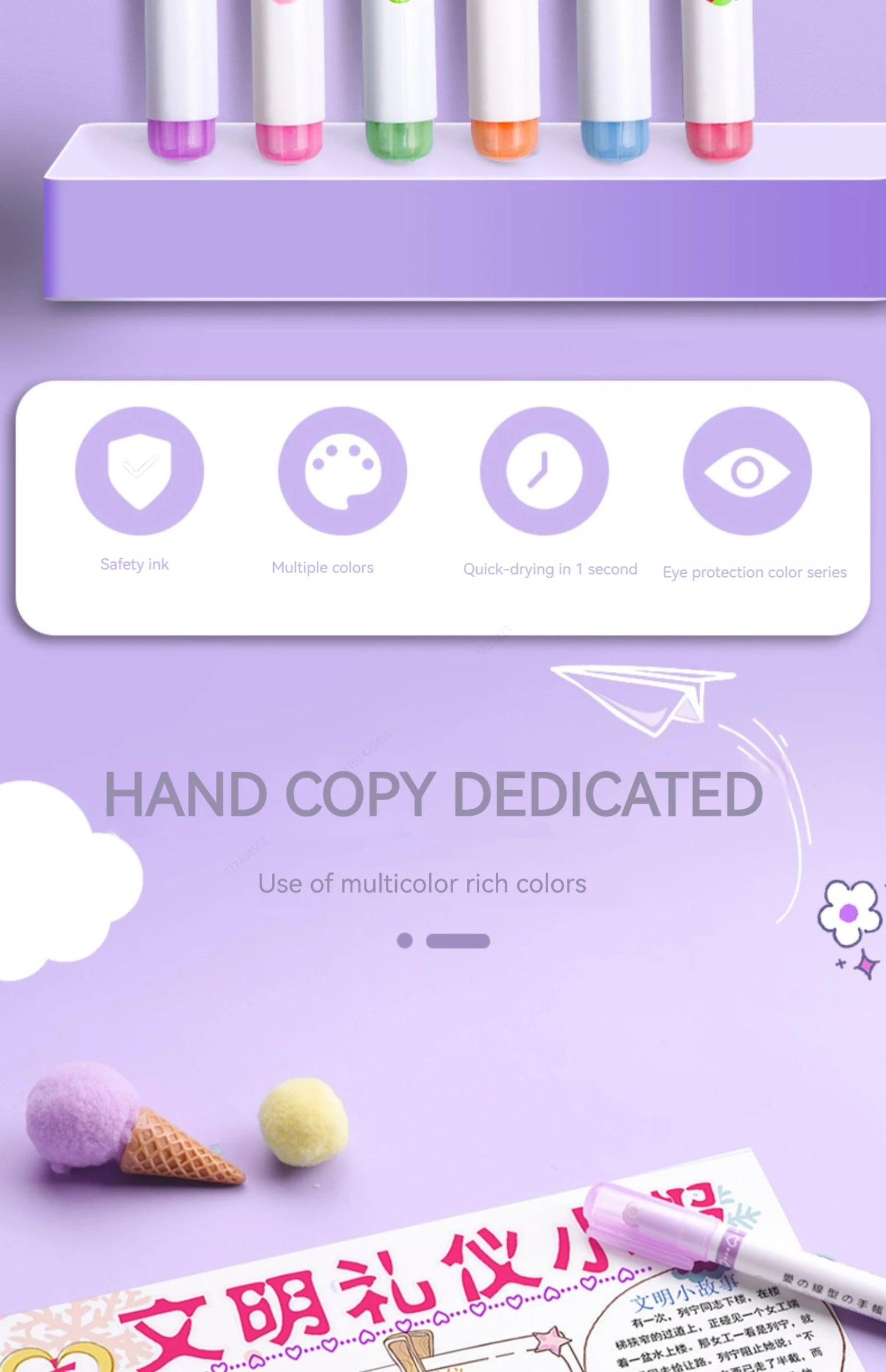 6Pcs/Set Flower Line Shape Highlighter Pen Roller Tip Curve Liner Marker Kawaii Korean Stationery School Office Supplies Gifts