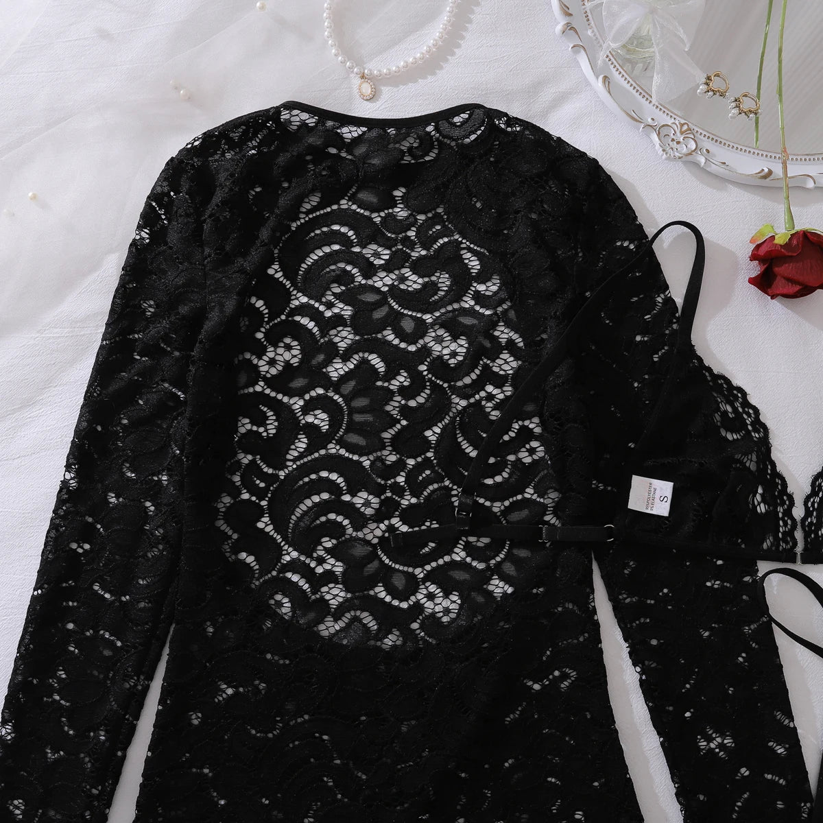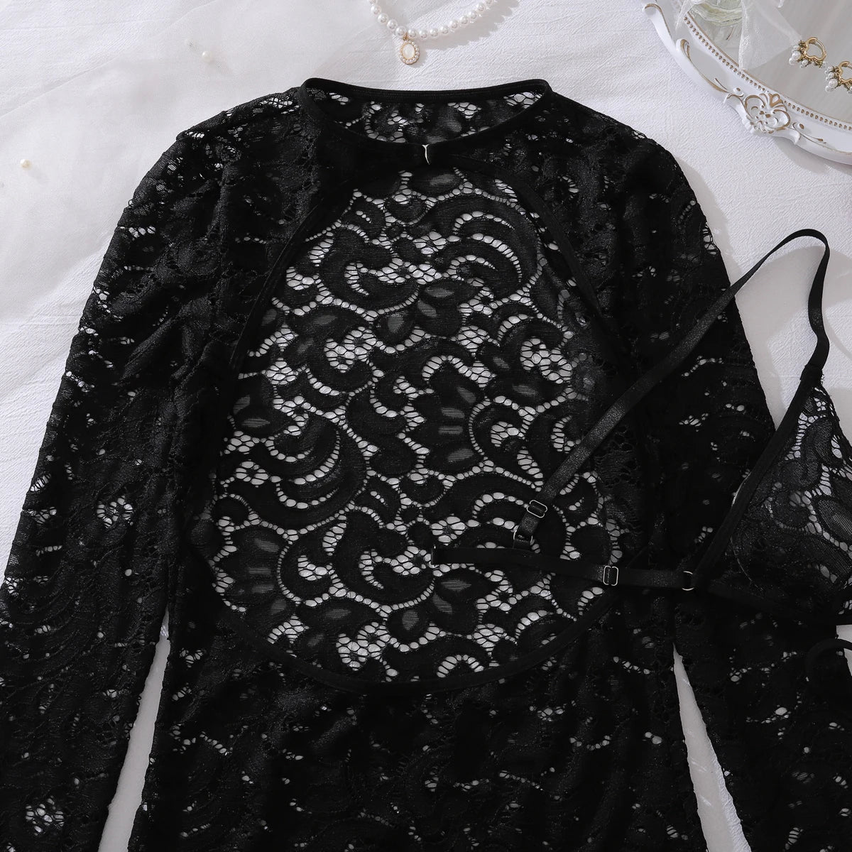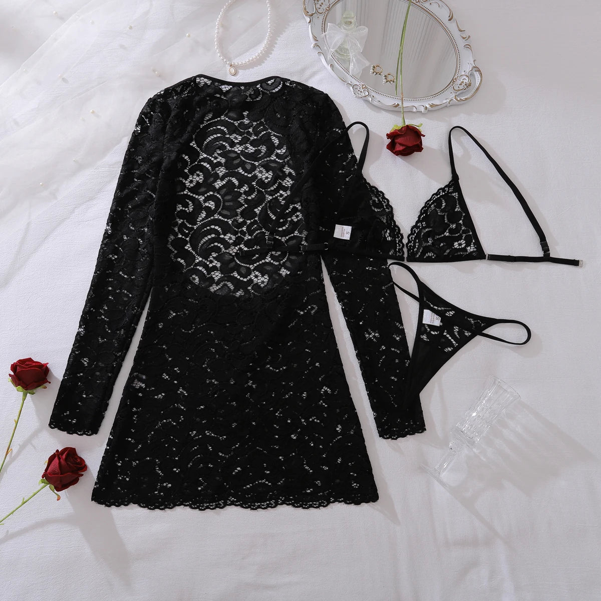 Ellolace Fantasy Sexy Female Lingerie Luring Bra Thong 2PC Set with Hollow Front Mini Dress Intimate See Through Woman Underwear