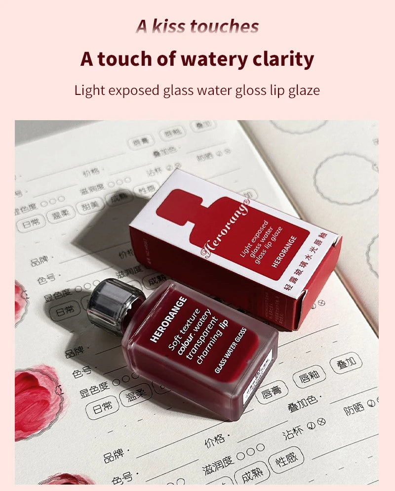 HERORANGE Light Glass-Like Lip Lacquer - Mirror Shine, Hydrating Formula; Smudge-Proof, Long-Wear, and Skin-Brightening