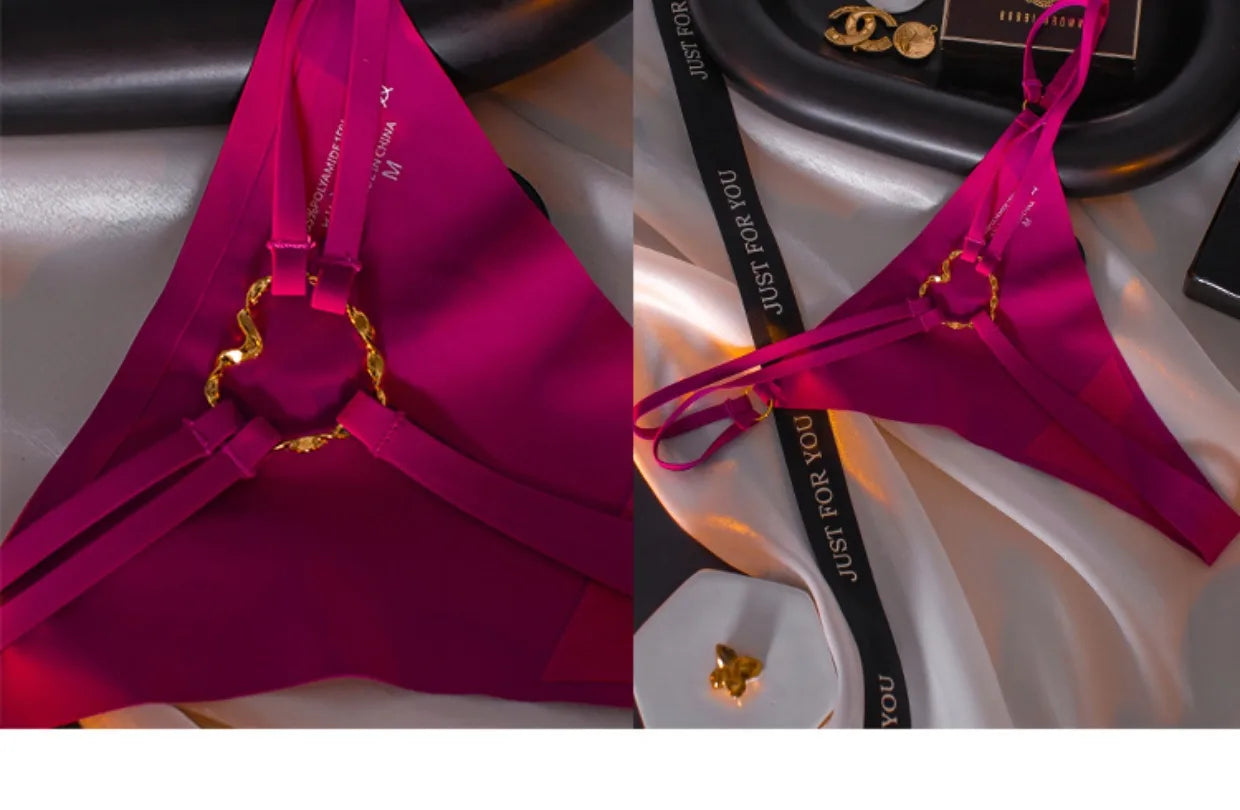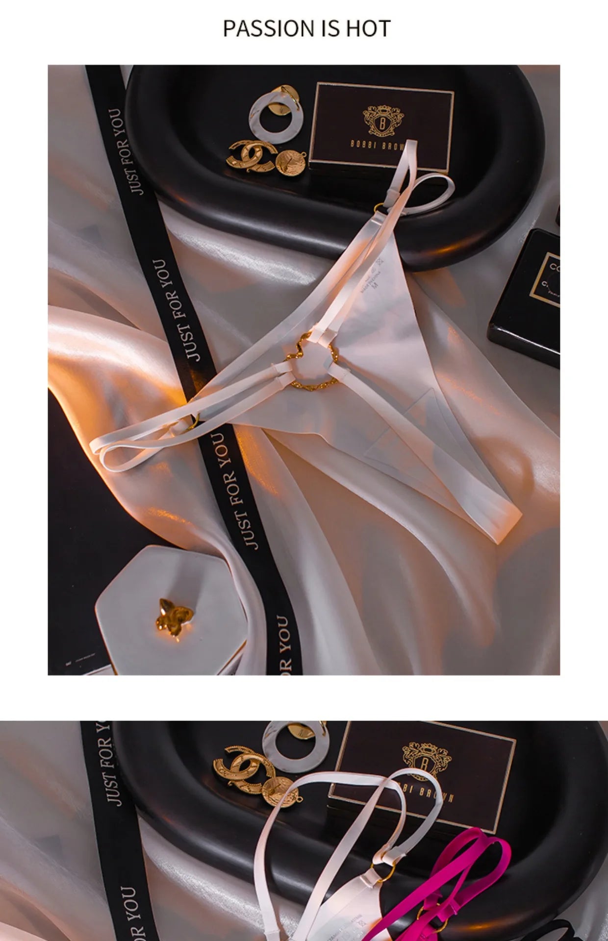 Ice Silk Girls Briefs Iron Ring Sexy Women G String Panties Underwear Thong Seamless Underpants Yoga Lingerie Plus Size S-XL