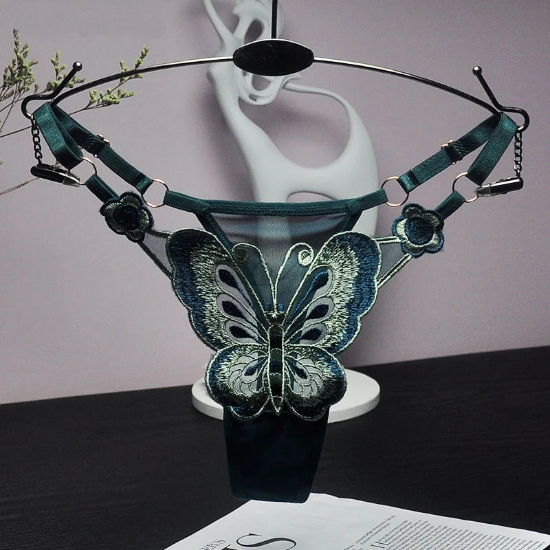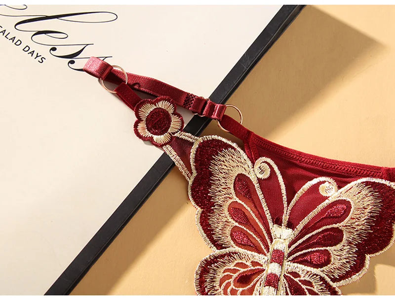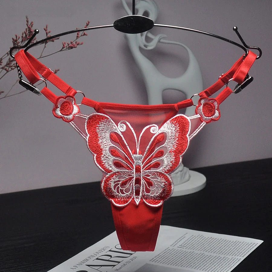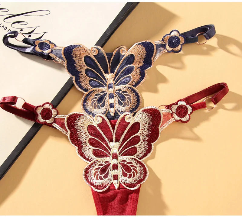 Sexy Lace Thong Women Butterfly Low Waist Panties G strings Transparent Mesh Briefs Adjustable Waist Panties Culotte Femme