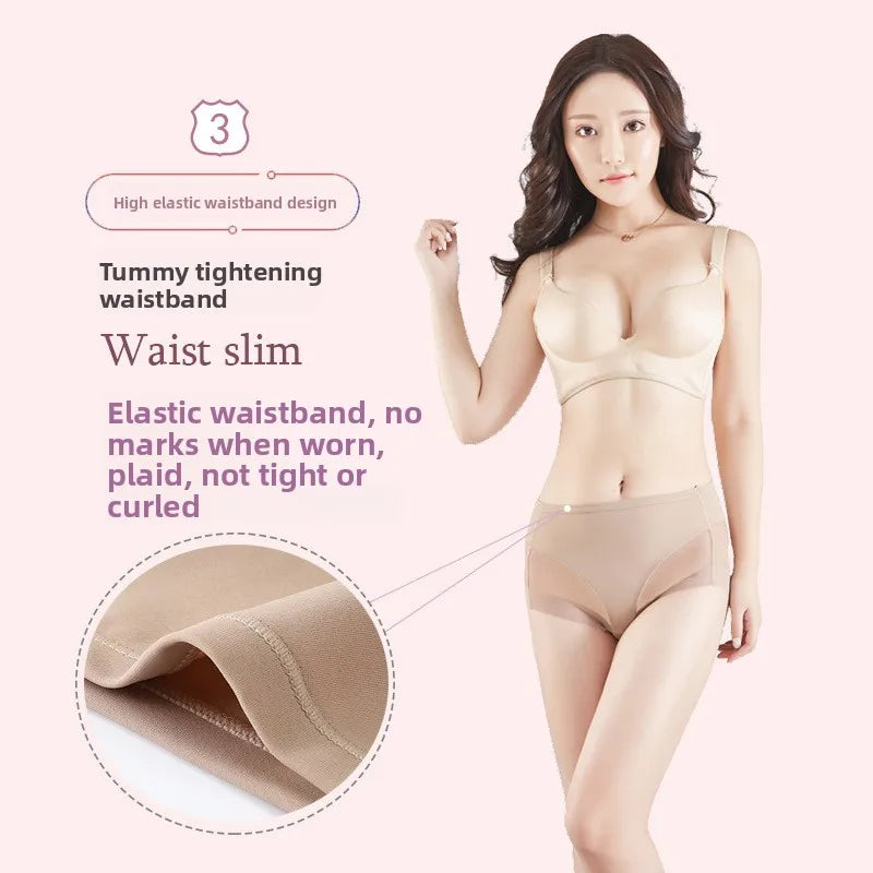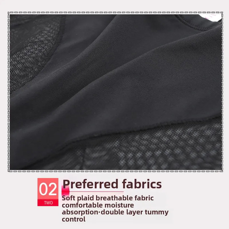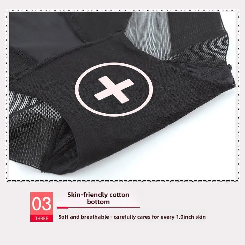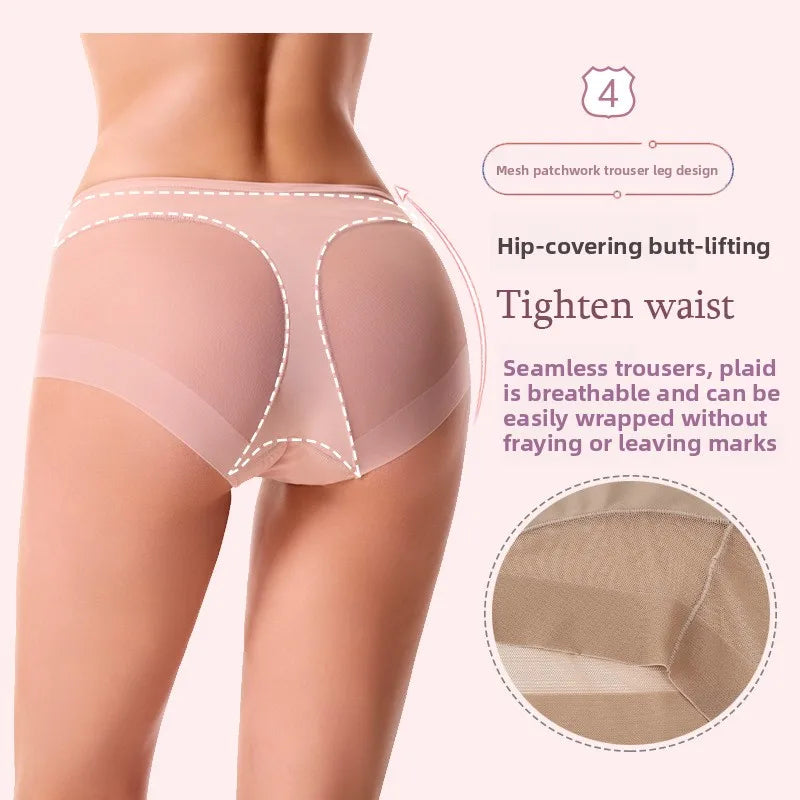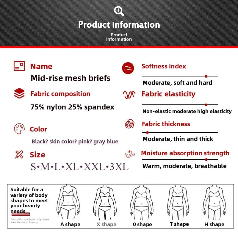 Sexy Mid Rise Womens Underwear Transparent Mesh Panties Waist Cincher Comfortable Ice Silk Large Size