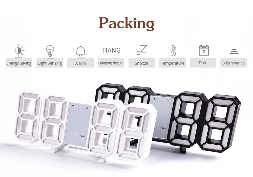 Wall Clock Digital Alarm Modern Kitchen Electronic Smart 3D USB Power Supply LED Time Date Temperature Display Desktop Bedroom