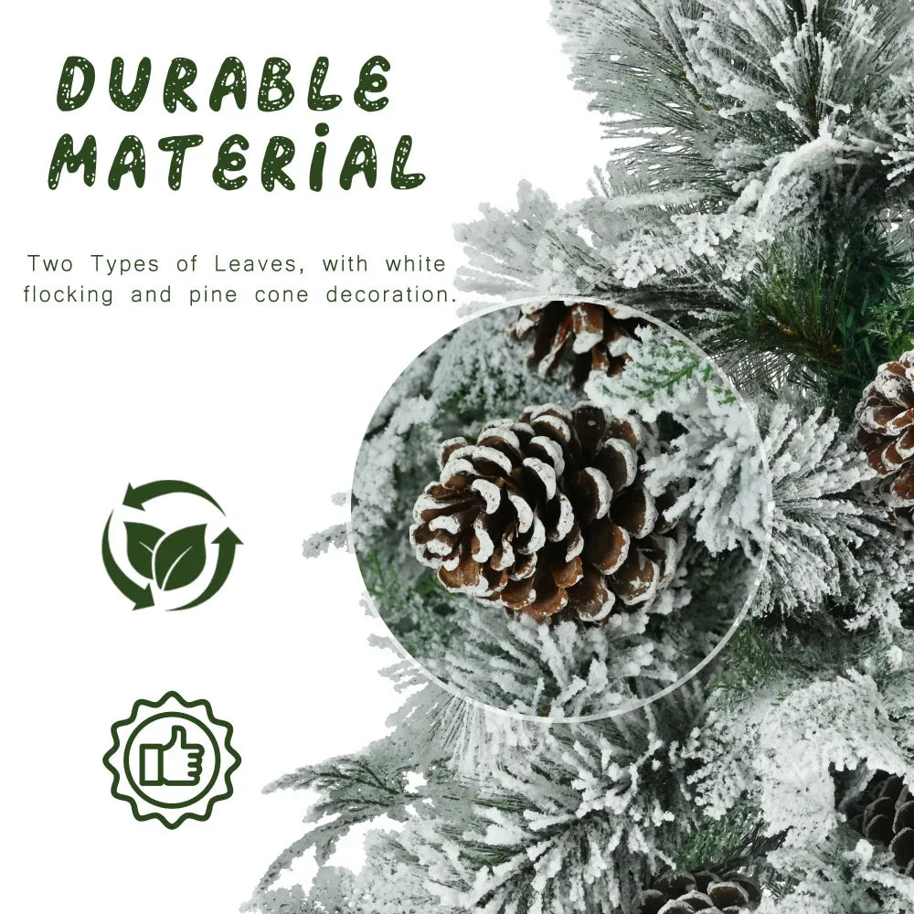 4FT Pre-Lit Spruce Snow Flocked Christmas Tree, Artificial with Pine Cones, 170 Tips, PVC Branches, 120 Multi-Color LED Lights