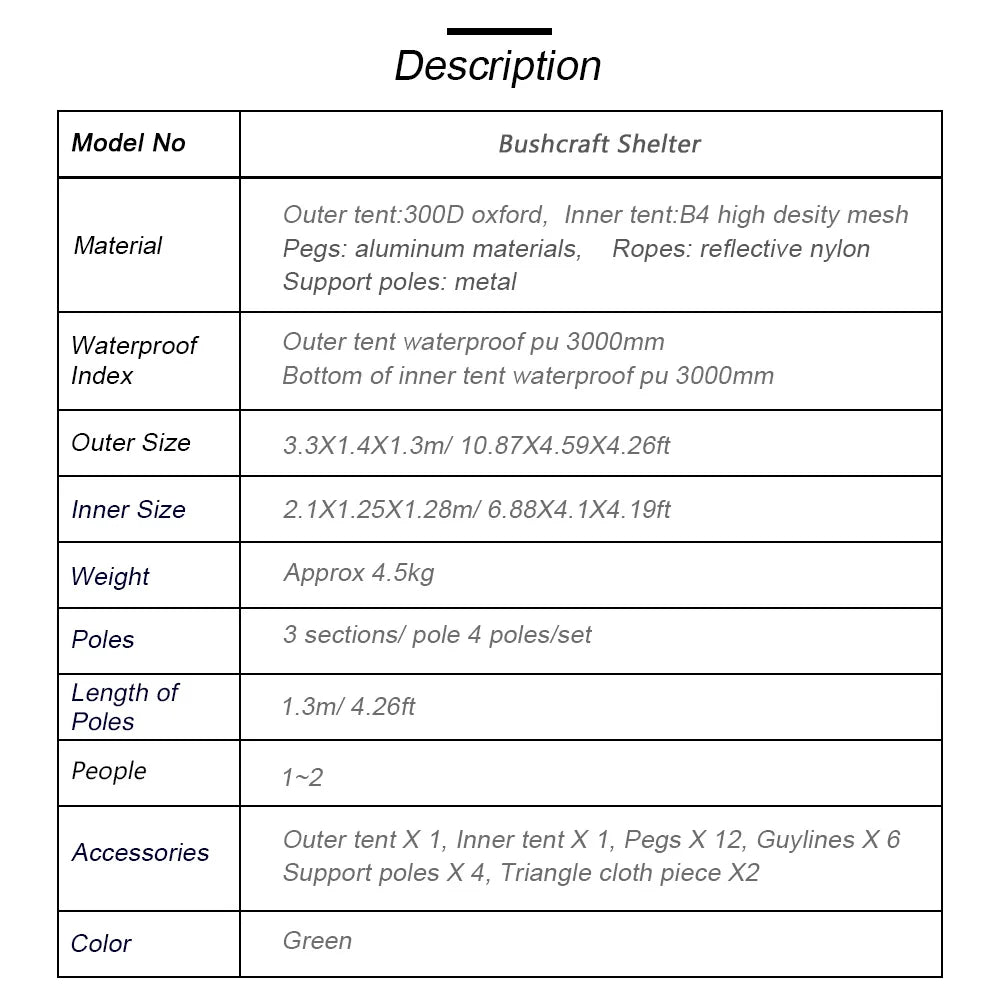 Bushcraft Tent Baker Style Outdoor Camping Multifunction Bushcraft Shelter Woodland Tent Backwoods Hot Tents for 2 Persons