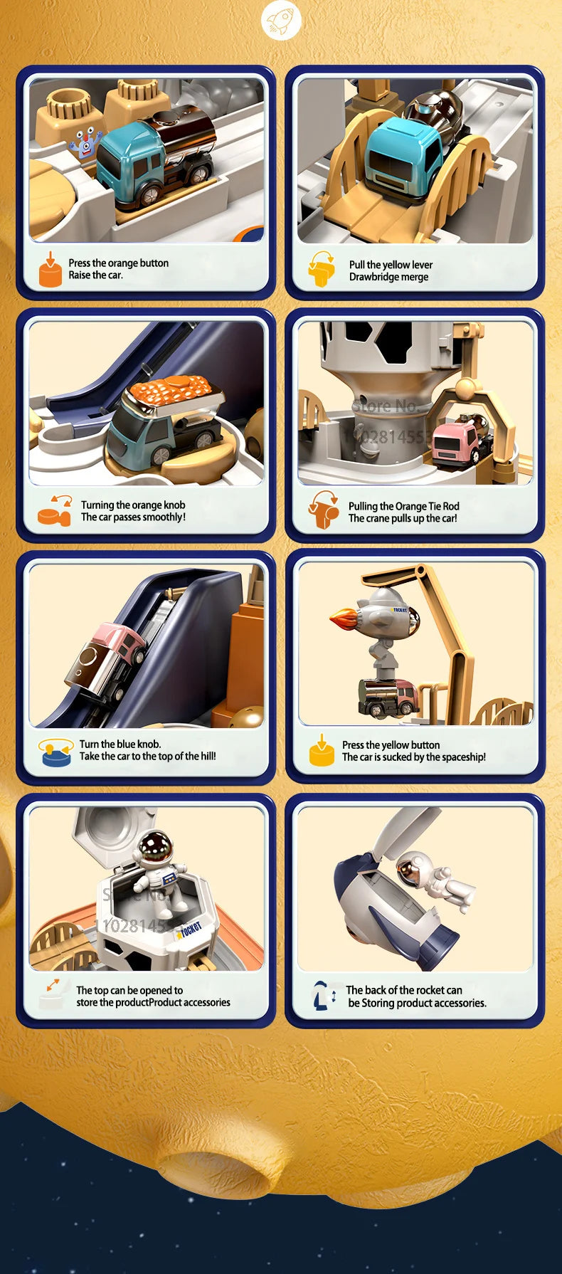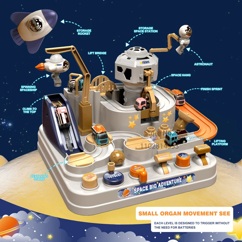 Car Train Track Sets Racing Rail Model Educational Toys Children Adventure Game Mechanical Interactive Animals Space Rocket Toy