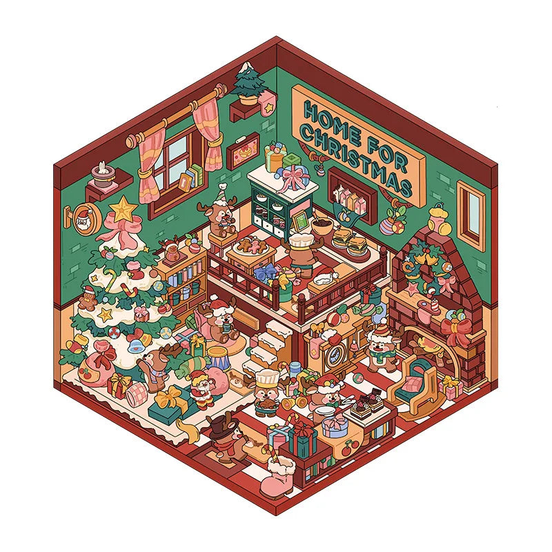 Christmas Theme DIY 3D Sticker Cartoon Pocket Cabin Scene Stacking and Pasting Festival Birthday Gift for Kid Child Student