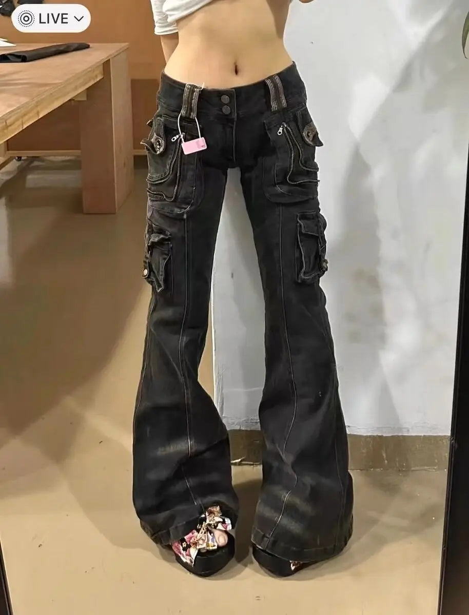Women Korean Fashion Chic Jeans Grunge Japanese Harajuku Gyaru Y2K Denim Cargo Pants Cyber Punk Hip-pop 2000s Aesthetic Tomboy
